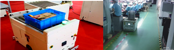 主要用于生产线上的原材料配送及半成品、成品的运输;在工业生产中能代替人做某些单调、频繁和重复的长时间作业或是危险、恶劣环境下的作业;可当作是一个个可移动的装配台、加工台使用,它们既能自由独立地分开作业,又能准确有序地组合衔接,形成没有物理隔断,但能起动态调节作用,实现高度柔性的生产线。