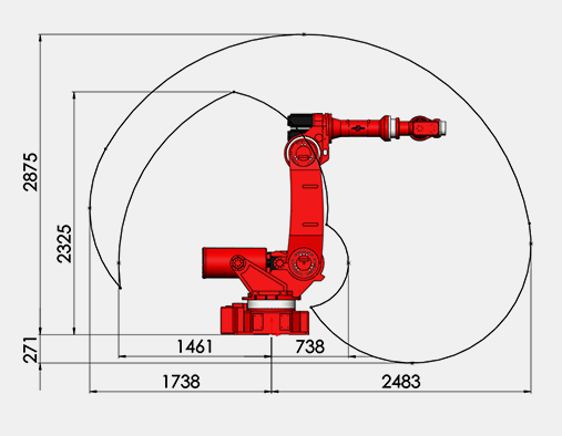 JL165特性:结构精简,有效负载为165Kg,最大工作半径为2483mm,主要适用于大负载、大范围的工作场合。