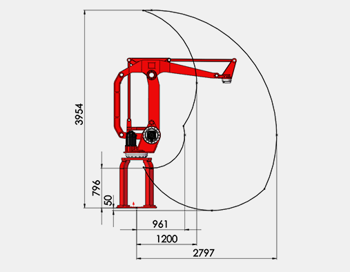 JLRB100特性:手腕负载能力为100Kg,最大工作半径为2797mm。