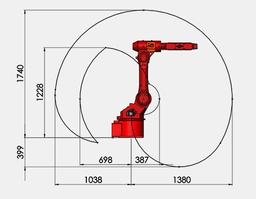 JLRB06特性:手腕最大负载为6Kg,最大工作半径为1380mm。