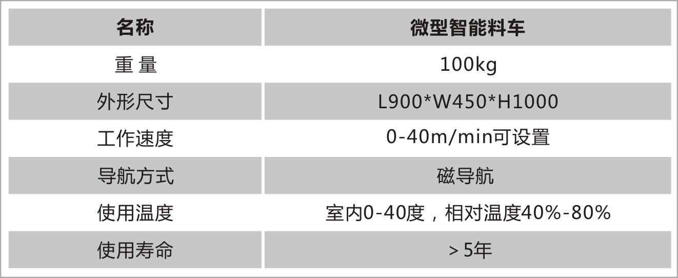 自动行走微型智能料车,利用磁条导航,能够自动完成物料收集工作。具有光电感应避障功能,保证运行安全;体积小,运用灵活方便。应用于各种物料运转需求场所。