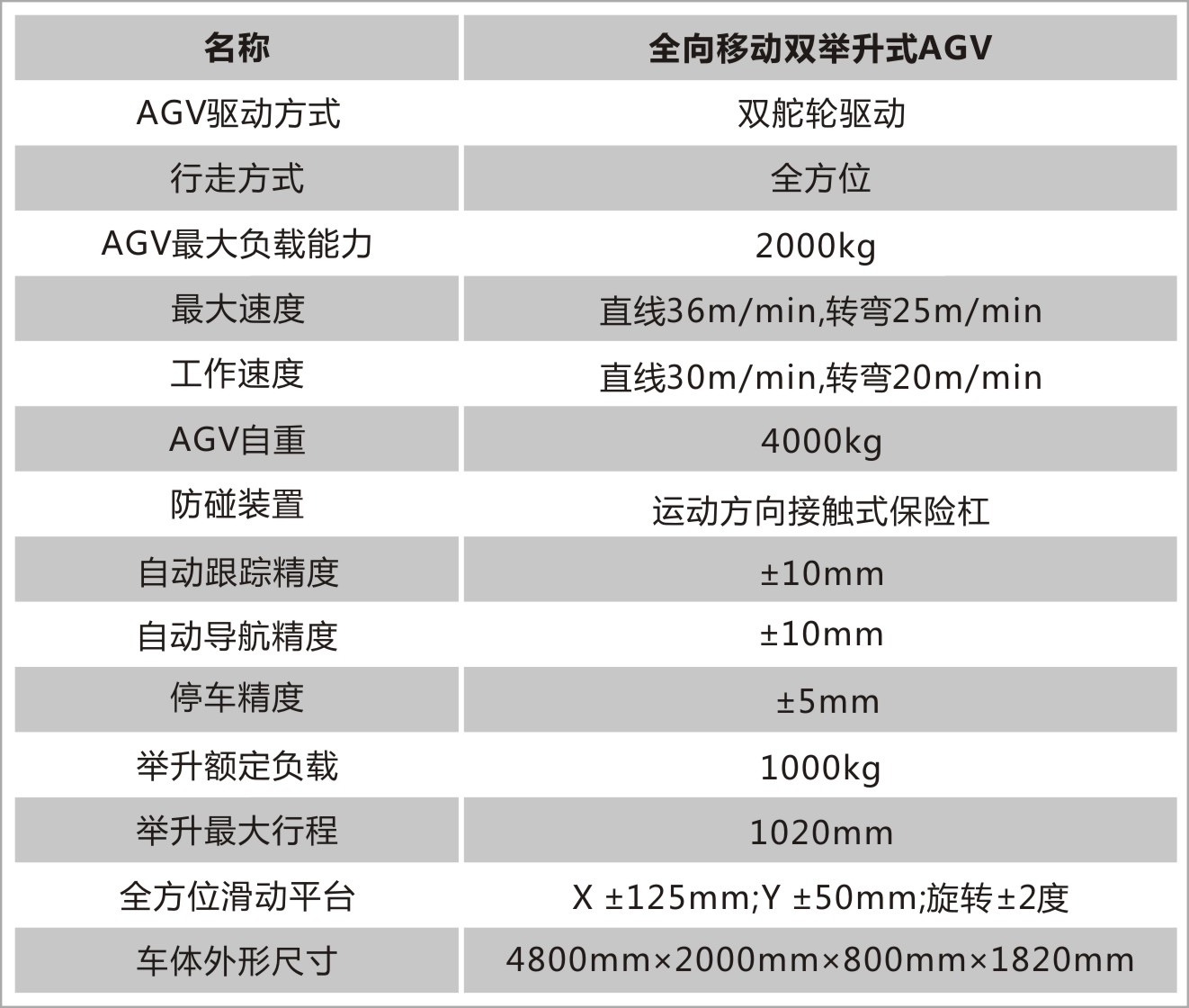 全向移动双举升式AGV主要由AGV车体和两台升降台机构组成,并可自动调节两个升降台作业,并保证输送的智能与安全。