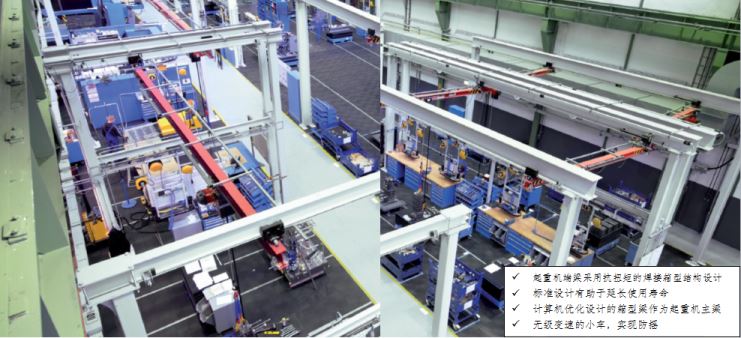 我们的产品系列包括单梁和双梁桥式起重机以及悬挂起重机。我们不仅提供带有焊接箱型梁的通用起重机,同时也提供采用轧制型钢的起重机解决方案。我们的产品种类丰富,墙壁式起重机和起重机组件针对客户特定要求定制。