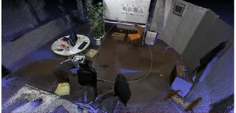 机器人利用双目摄像头获取室内场景的深度信息。通过对室内环境全面扫描构建室内真实三维地图。构图完成后,通过在地图中匹配当前点云信息,推算当前机器人的位置和朝向。