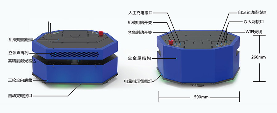启程3是一款面向室内定位导航应用的移动机器人产品。该产品底盘采用三轮全向方案,具备360°全方向移动能力。默认标配一枚高精度进口激光雷达,具备室内SLAM环境建图功能,结合ROS-Navigation导航系统,可以在室内完成自主导航功能。机身内部标配一台Intel CPU高性能计算机,具备USB、Ethernet等多种数据接口,为机器人的功能扩展提供了极大的空间。