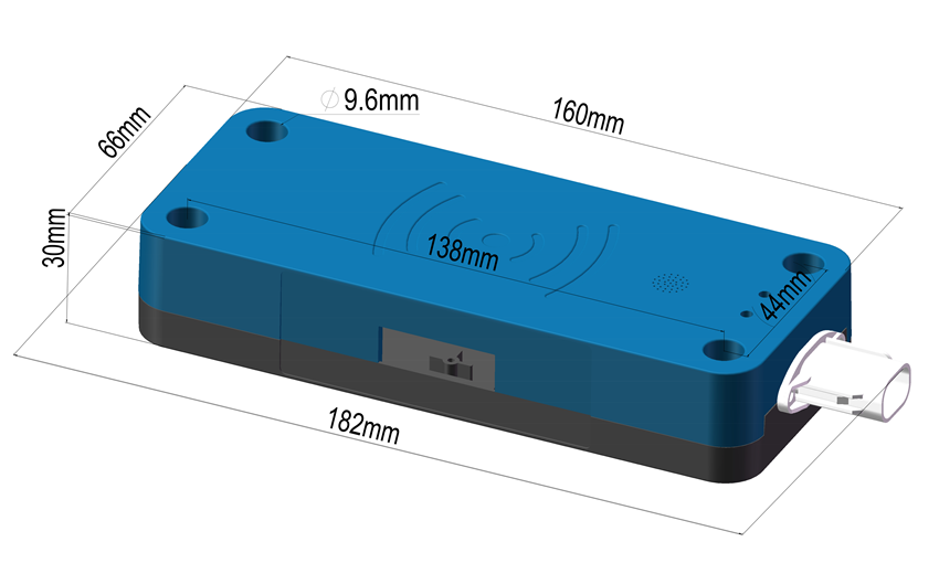 注意:此读卡器和AGV地标标签,均不可直接固定在金属表面,否则会漏读或感应距离变近。如需高速读卡,建议读卡器的安装高度为AGV地标上方5 cm,远离电机干扰;