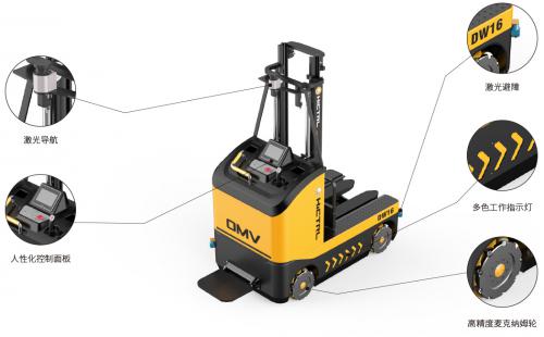 颠覆传统叉车概念,零回转半径,侧移,全方位无死角,任意漂移,告别传统驾驶模式,可选配遥控器轻松操作,人身安全更有保障。搭载激光自动导航系统,实现智能无人化。背负式设计、伸缩式门架,减少体积,窄巷道运行