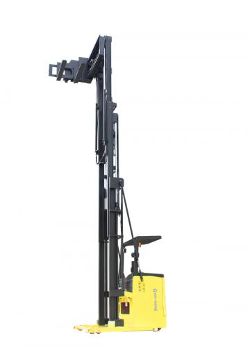 三向旋转堆高AGV最大特点是货叉可以180度旋转并侧移不需车体旋转存取货物,最大举升高度8米,能满足普通高位窄巷道密集型仓库使用要求。