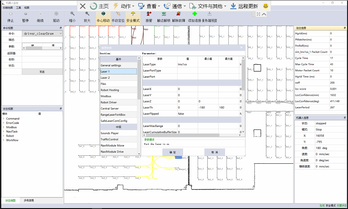 无反光板激光导航系统,又称自然轮廓导航,其基于slam算法、粒子滤波算法和迪杰斯特拉算法,