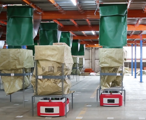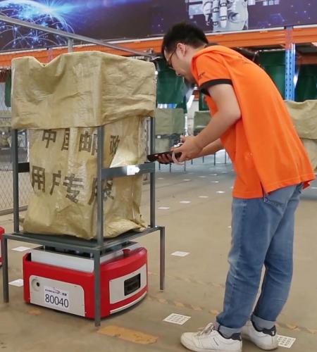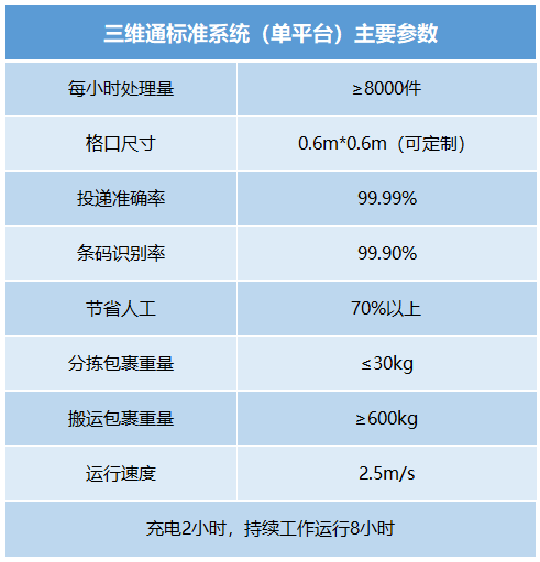 AGV运行速度高于同行,达到2.5m/s,且可在行进中实现包裹投递