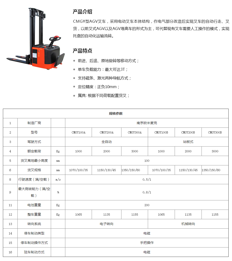 南京欧米麦克 麦克纳姆轮AGV叉车