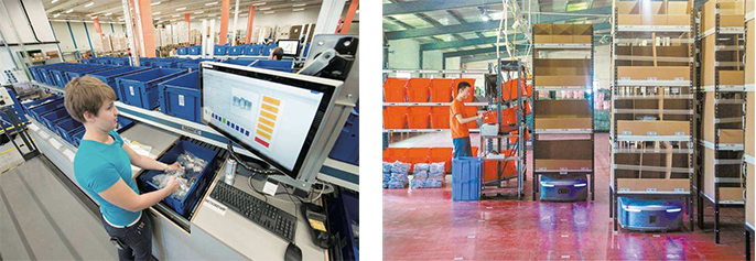 高效的另一个指标是准确性。配合电子标签、RF终端、称重系统等辅助拣选系统,“货到人”拣选系统具有非常高的准确性。传统拣选系统的准确率一般徘徊在99.5%-99.9%,而“货到人”拣选系统一般可以提高一个量级,其误差可控制在万分之五以内。由此,可以从根本上去掉复核环节,从而进一步减少作业人员。