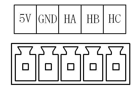 (2) 连接电机的相线及霍尔信号线。连接时应先确认电机的相线及霍尔信号线定义。然后 按照定义与驱动器上的端子对应正确连接。错误的接线可能导致上电调试时电机振动 或飞转,异常报警等。