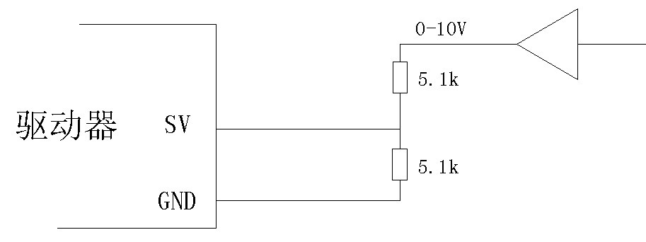 SV 用于模拟量输入或者 PWM 输入端,当在 BLDC_2 软件的输入设置为“模拟输入”或者 “PWM 输入”方式时,该端口输入的量作为速度的给定值,下面是接线图及说明。