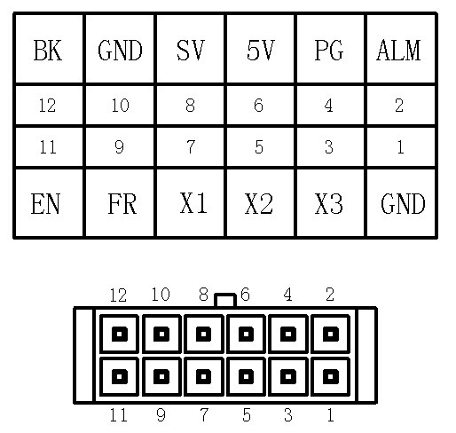 12 | BK | 刹车信号,高电平刹车,正常应接 GND |