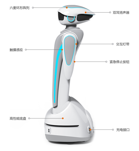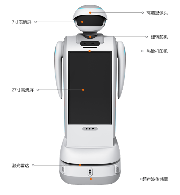 大屏版服务机器人首次采用27寸超高清大屏,适用各类应用场景,实现人机零界限交互体验