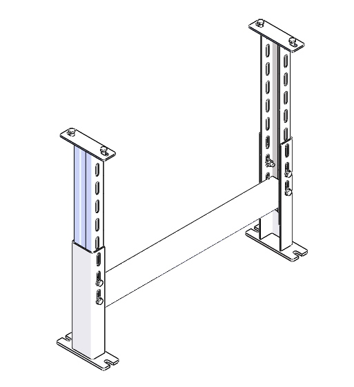 支腿:采用定制型材焊接式,具有牢固,稳定性好等优点。用连接板与机架螺栓连接,调节脚底座与地面连接,输送面高度调节±50mm,结构如下图所示: