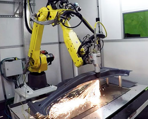 1.机械结构采用进口机械手,六轴联动,将激光束引导装置完全集成在机器人手臂中,将稳定的激光和运动的机器人手臂的优势相结合,可实现三维空间内任意曲线和特定曲线的加工,操控方便,智能化程度高,大大减少了周期时间,保证了设备的高运行速度,高精度及高可靠性;