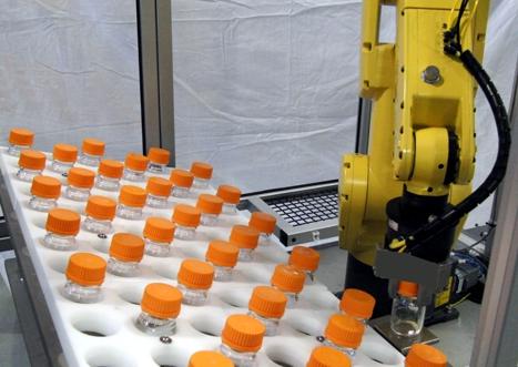 在食品药品生产中经常需要对不同的产品进行分拣、装托,例如按不同重量分类,按不同颜色分类,按不同大小分类等等,在自动分拣机器人已得了广泛的应用。从食品、药品、化妆品的生产线到太阳能电池板组装等各种领域均可使用的高速分拣机器人。