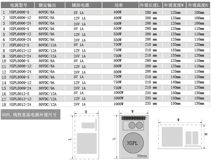 NSPL线性直流电源是诺信泰针对步进和伺服应用开发的专用电源,具有结构简单,性能稳定可靠,成本低廉等特性。NSPL是线性输出直流电源, 同时提供一组辅助电源(12V/1A;24V/0.5A;5V/2A 可选)供用户用作逻辑电源或者驱动开关、风扇等。NSPL具有过流过压保护功能,可为多台步进驱动器、伺服驱动器供电。相对开关电源,线性直流电源的成本低廉,但物理尺寸更大,也较重。