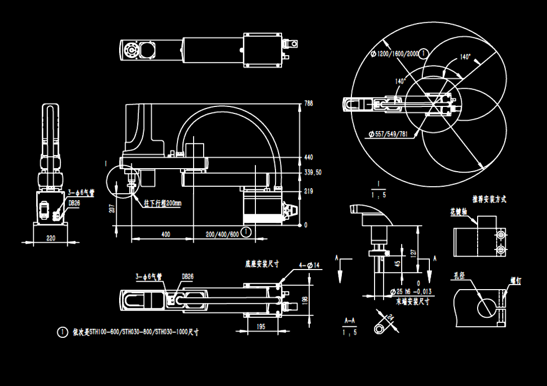 | 轴规格 | 臂长(mm) | STH100S-600 | STH100S-800 | STH100S-1000 | 400 | 200 | - | |