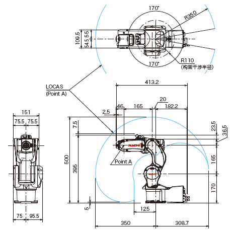 ※1 一览表中最大速度为最大值,根据作业程序及手腕负荷条件而变化。
