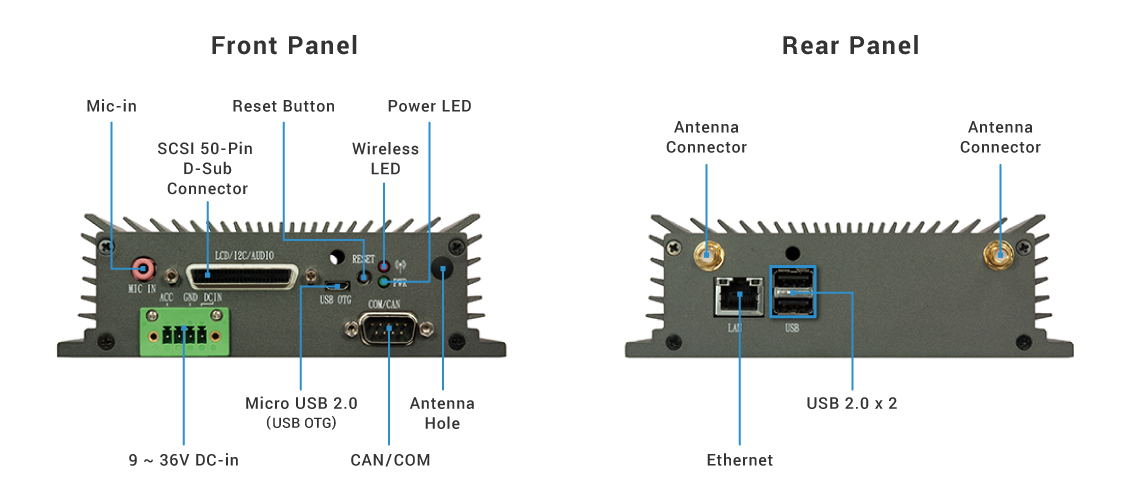 支持传统I/O连接,包括双CAN总线,COM接口及GPIO接口