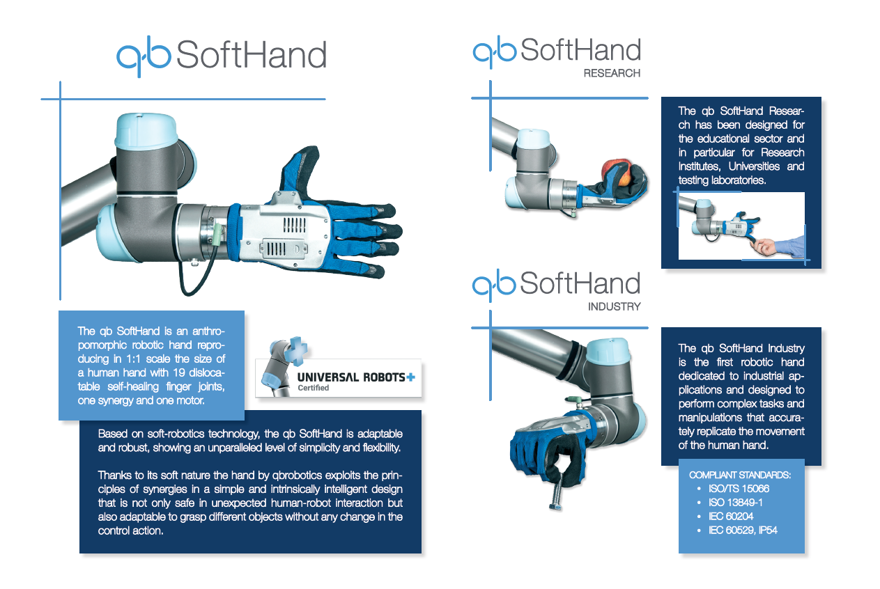 qbrobotics 主要产品系列:qbSoftHand五指灵巧手和qbMove执行器