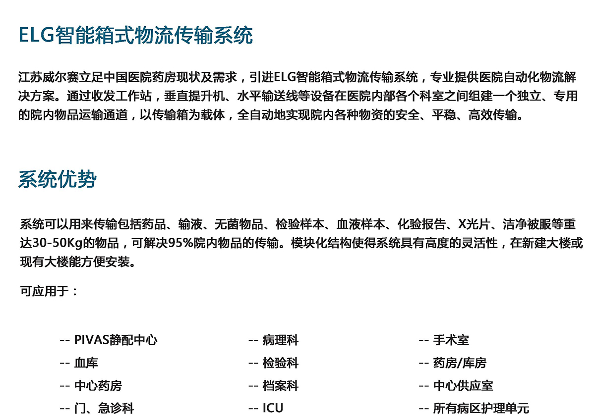 威尔赛ELG智能箱式物流传输系统
