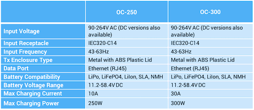 我们的高功率系统使用TR-300变送器和OC-250(即将推出)或OC-300板载充电器,具体取决于客户对尺寸,重量和功率的需求。