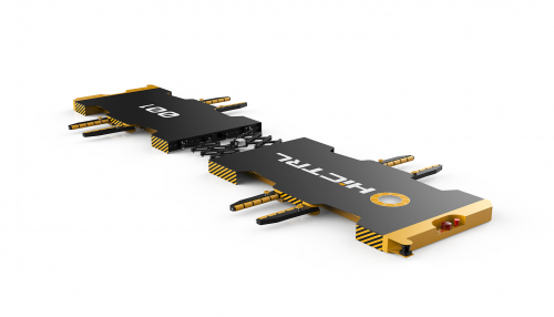 OMV夹持式停车机器人无需借助载车板、梳齿、支架等辅助设施,可以直接进入车辆下方,通过机械臂自适应不同车型的轮距、轴距,直接夹取车轮,移动车辆。夹持式搬运机器人有8个夹臂,可旋转收缩。在初始状态时,夹臂处于收缩状态,能够钻到轿车底部;在举升轿车的状态时,机器人钻入轿车底部的位置后,夹臂开始打开,将轿车抬离地面;在搬运状态时,轿车被夹臂夹离地面后,通过行走机构完成对轿车的搬运工作。