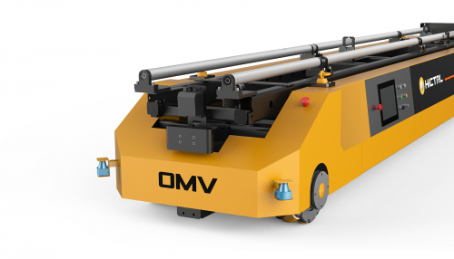 OMV特种转运设备利用麦克纳姆轮实现零回转半径、侧移、全方位无死角任意漂移,全方位自动导航,最合理的路径规划,去掉人工每个工位的转载、对接。直接提升装配效率。动力导航平稳衔接各部件、各工位。全方位自由移动,真正实现柔性装配,上位机合理规划适合流水线的最佳路径,让超长设备在车间里各工位运行自如。