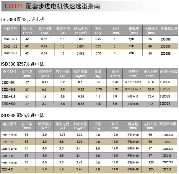 SD388三相混合式步进驱动器采用伺服原理工作,用于驱动ISM3系列0.4Nm~6Nm的三相混合式步进电机。输入电压18V-80VDC,最大驱动相电流8.0A,适于采用脉冲+方向以及双脉冲信号对步进电机进行控制的应用。SD388在高速时,对抗电机反电动势的能力更强,高速时的矩频特性也得到很大改善,较传统步进在高速区域失扭拐点显著后移,低速运行的平稳程度也堪比伺服,即使每分钟运行5转,也能保持平稳运行,没有爬行现象。