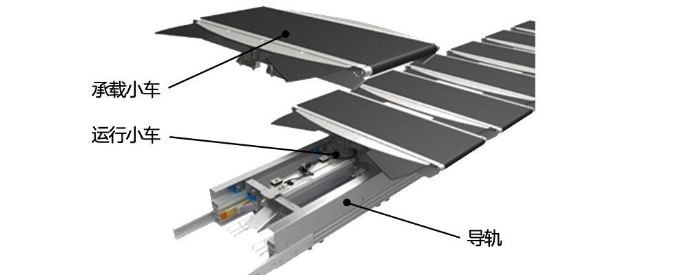 运行小车首尾相连在分拣机上形成一个连续的环,每个运行小车都相对独立,即便单台小车出了故障也不影响其他小车的使用。运行小车的信号通讯采用即插即用的设计原则。
