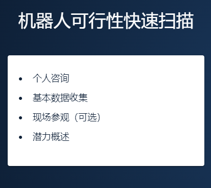 从创建自动化策略到分析和选择潜在流程,再到实施测试项目和完成安装,我们都将为您提供支持。这三个标准的咨询包是快速而灵活的开始。