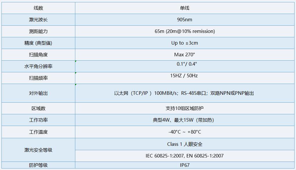 WLR-715系列激光雷达采用激光-时间飞行(Time of Flight)原理,结合高频激光脉冲发生技术、多脉冲回波技术、高精度计时电路和高效精密的光学系统和高速扫描系统,可在65米范围内快速精准测距,具有扫描角度大、近距离精度高、抗干扰能力强等特点,被广泛应用于激光轮轴(驱动轴)识别、激光车型识别、激光光栅、激光替代线圈等系统方案中。