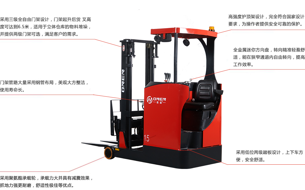 产品特点:欧能全新座驾前移式叉车,性能可靠,操作轻盈舒适,使用和维护成本低,而且体积较小,节能环保,无嗓音,可以在狭窄通道内作业。