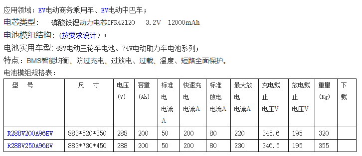 荣威顺 288V200AH电池模组