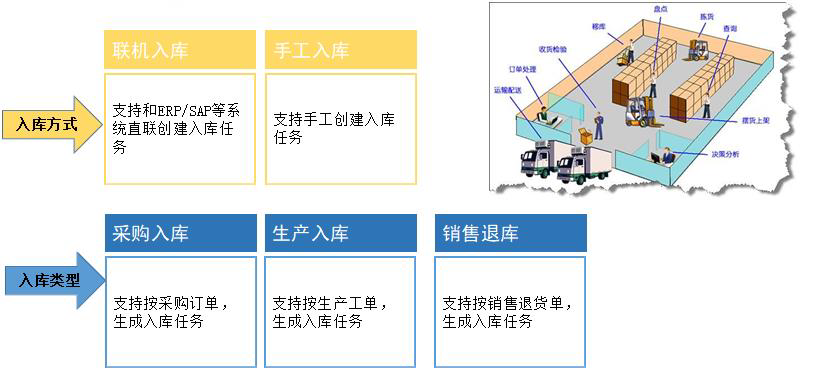WMS可以独立执行库存操作,也可与其他系统的单据和凭证等结 合使用,为企业提供更为完整企业物流管理流程;