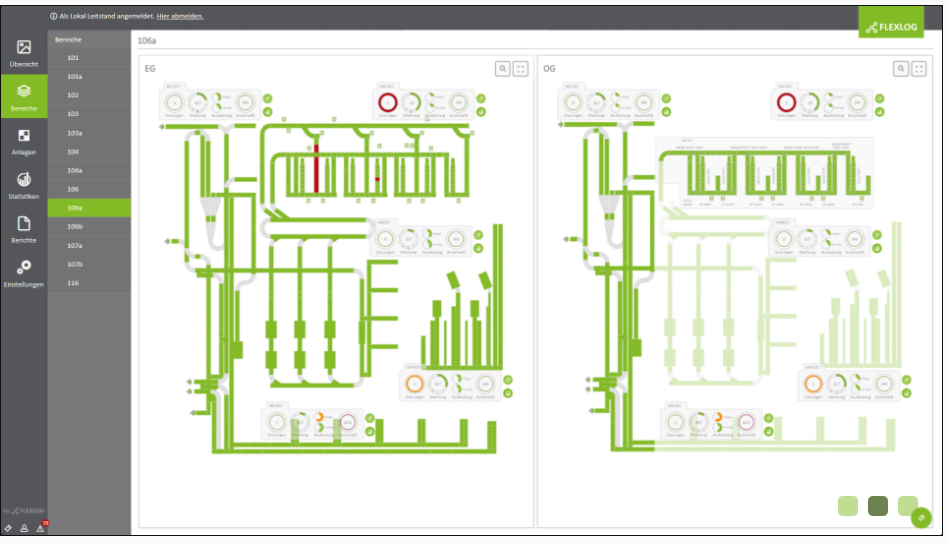 您的整个系统一目了然完整的位置概览以及每个单独大厅的实用状态报告。通过物料流文档进行精确跟踪,包括可追溯性和历史记录。