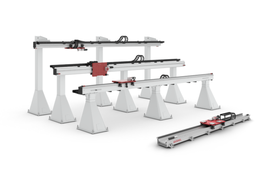Güdel 提供多种尺寸的标准 TrackMotion Floor (TMF) 和 TrackMotion Overhead (TMO) 模块,以适应每个机器人品牌和各种机器人型号。这些 TrackMotion 模块的长度从 3 米到 100 米不等,专为当今和未来的灵活使用而设计。这些 TrackMotion 模块采用 Güdel 的组件(包括我们专有的滚轮架系统)构建,非常可靠且易于维护。