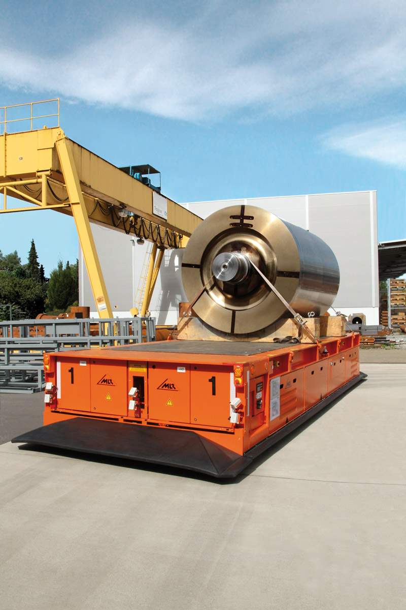 Caesar 系列的无人驾驶重型车辆可运输高达 63 吨的大型重物。自动导引车系统设计用于各种天气条件下的户外使用。