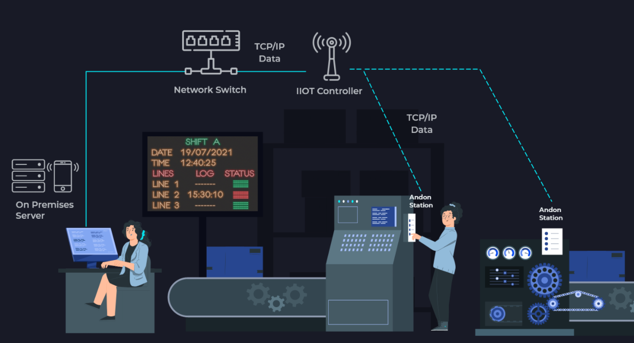 借助 ANDON 解决方案,我们可以帮助您最有效地优化工厂的性能。精益理念是消除生产线上的 7 个浪费源。ANDON 解决了一个关键来源,如果不及时处理可能会导致重大损失或可能导致工厂停工。监控正在进行的生产线,当遇到异常时手动或自动向相关人员发送警报。该问题会立即得到解决,这有助于更好地管理停机时间。