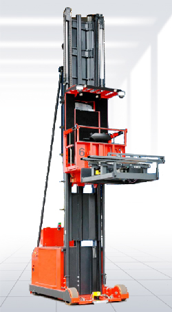 Mayesto 无人驾驶自动化窄通道叉车,能够将 3300 磅提升至 36 英尺。自动连接到仓库管理系统的负载处理。