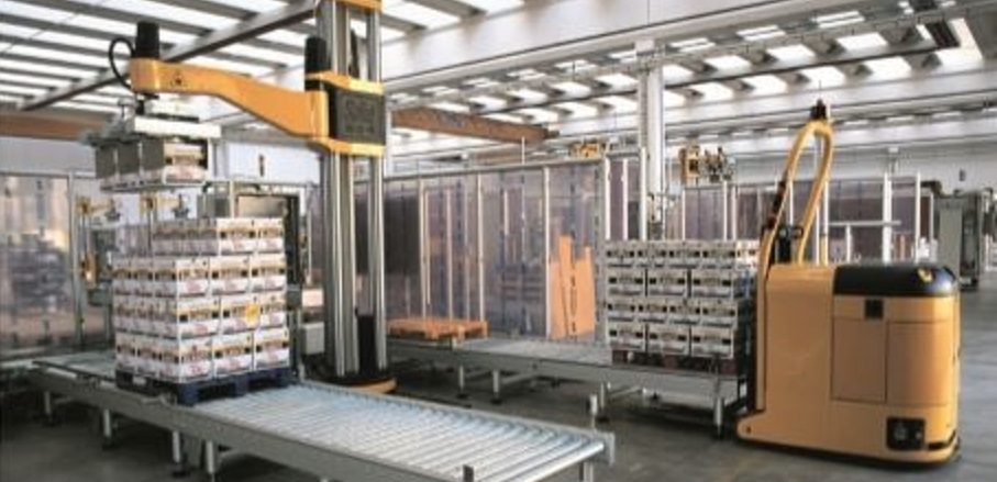 AGV 系统可以在您的操作中实施,而无需在设施的地板上或地板上添加设备。使用三角测量法,引导 AGV 通过设施执行其所需任务,避免损坏建筑物、产品或设备。AGV 系统还提高了工作环境的安全性。将 AGV 系统与码垛系统配合使用可实现完整的“生产线末端”自动化,从而节省成本并显着改善生产管理。