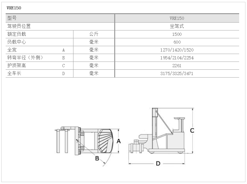 丰田:非常窄巷道车叉车(人下行) VRE150