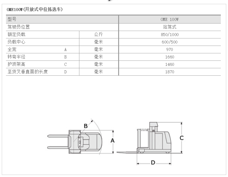 丰田:中高位拣选车(开放式中位拣选车) OME100W