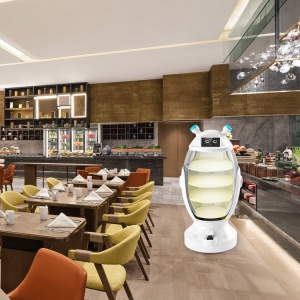 采用封闭式送餐容器的独特设计,提高送餐过程中的“无接触”安全等级,解决市面上常见的开放式送餐机器人难以解决的食品安全卫生问题。自主导航,进行避障和移动到达目标点位。