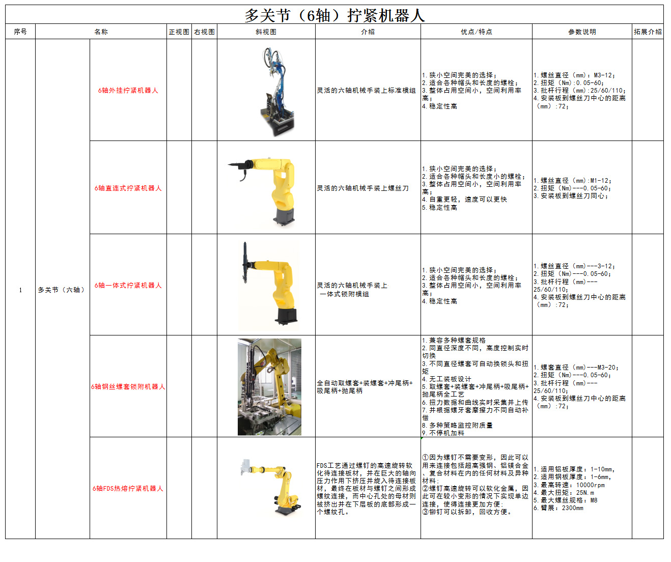 多关节(6轴)拧紧机器人