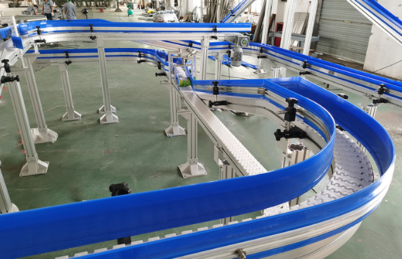 5、输送面平坦光滑,摩擦力小,物料在输送线之间的过渡平稳,可输送各类玻璃瓶、PET瓶、易拉罐等物料,也可输送各类箱包。